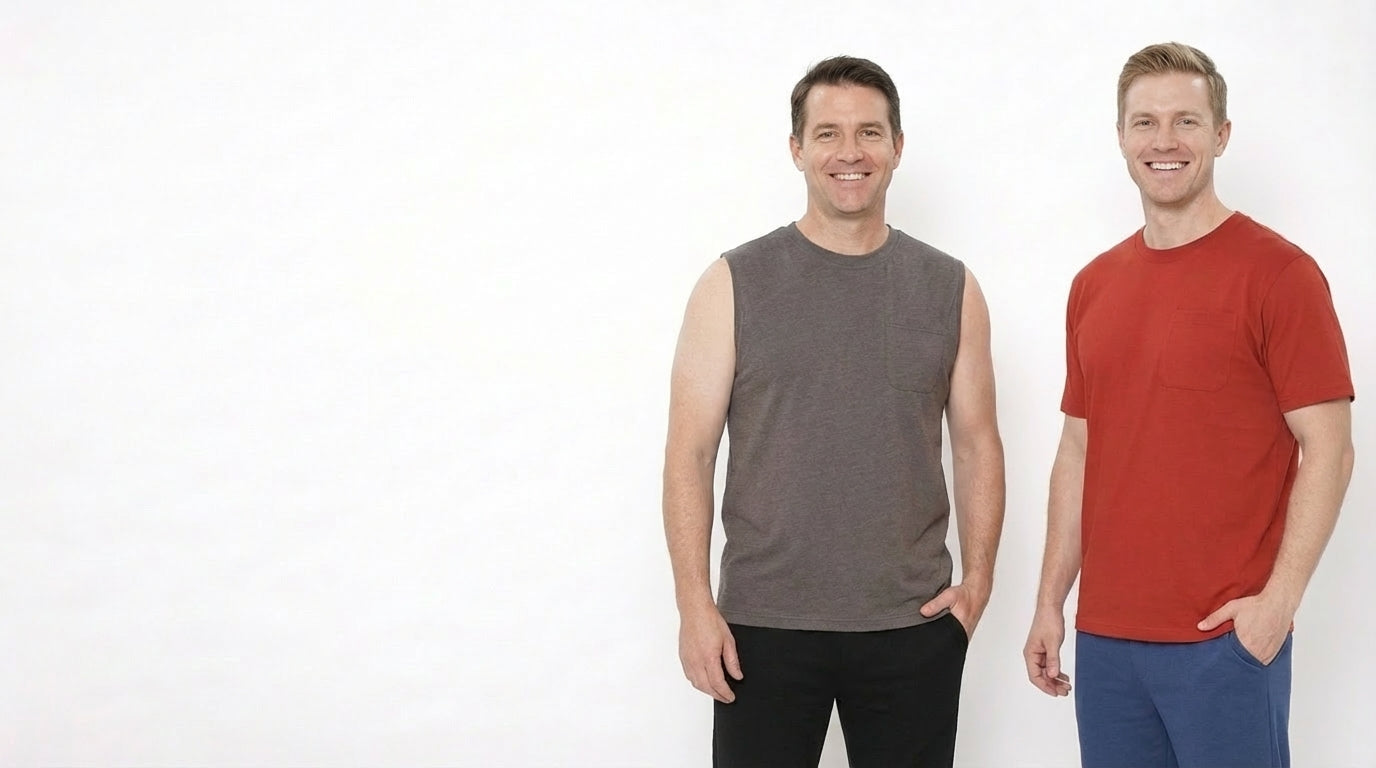 • Men’s Sleeveless Crew Neck T-Shirt – Regular Fit, Heavier Cotton Blend Jersey with Chest Pocket