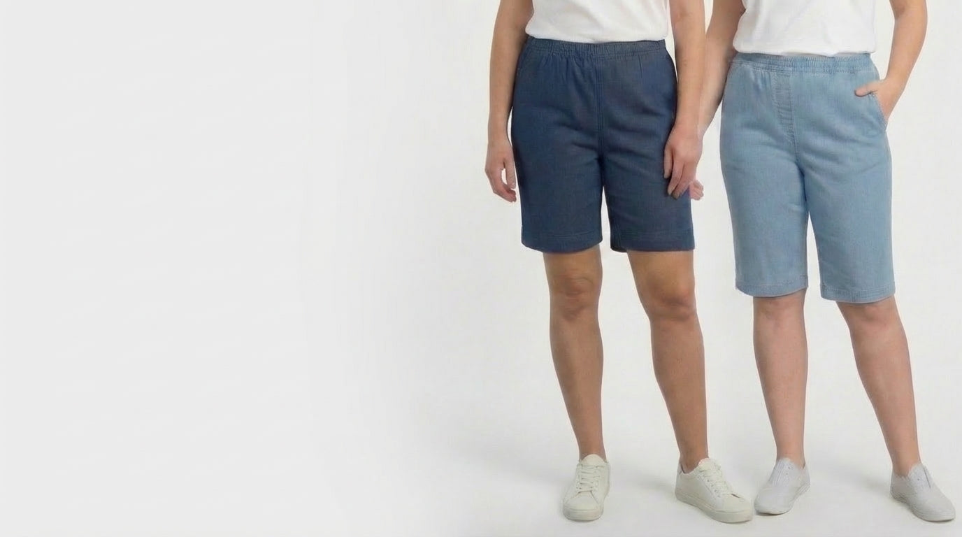 Women's Easy Pull on Bermuda Shorts in Denim and Twill