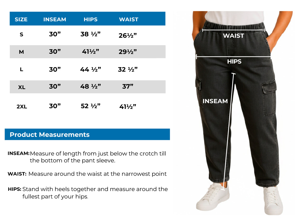 Upgrade your everyday look with these Women's Cargo Pocket Jeans, blending on-trend style with all-day comfort. Made from a soft, durable cotton blend, they feature a stretchy fit that moves with you and a pull-on elastic waistband for effortless wear. The functional cargo pockets add utility without sacrificing style, making these jeans perfect for errands, casual outings or lounging at home. Versatile and modern, they are a must-have for any wardrobe.