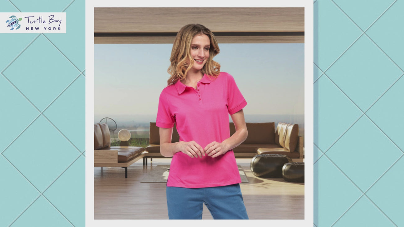 Women's Short Sleeve Pique Knit Polo Shirt in Relaxed Fit Pocketless Jersey