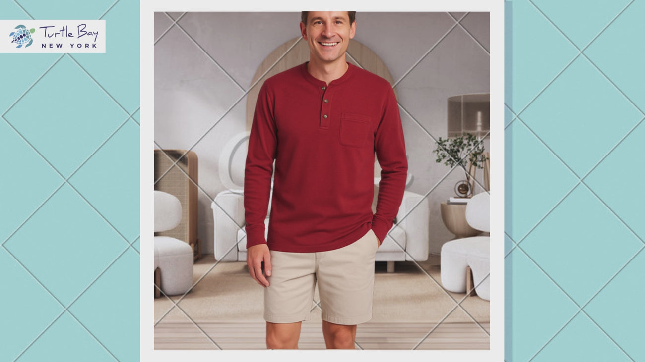 Stay warm and stylish as the temperature drops with our Men’s Long Sleeve Henley Shirt. Made from a soft cotton and poly blend, this shirt provides ultimate comfort and a cozy feel, perfect for chilly fall days or when you need a relaxed, yet polished look. The classic straight hem and relaxed fit make it easy to pair with any bottoms, whether you are dressing it up with a jacket or keeping it casual. Featuring a 3-button placket with tortoise shell buttons, a chest pocket, and ribbed cuffs, this Henley shirt is designed with thoughtful details that elevate its appearance. Crafted from durable fabric, it resists fading, pilling and stretching, ensuring it retains its shape wash after wash.